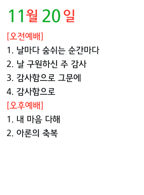 11월20일 찬양콘티