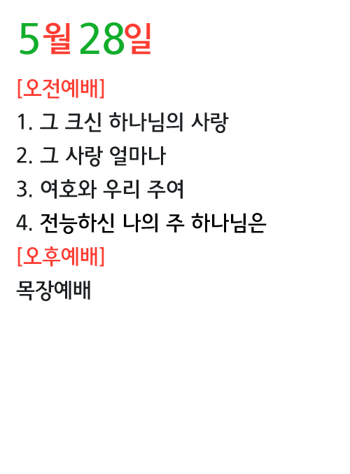 5월28일 찬양콘티