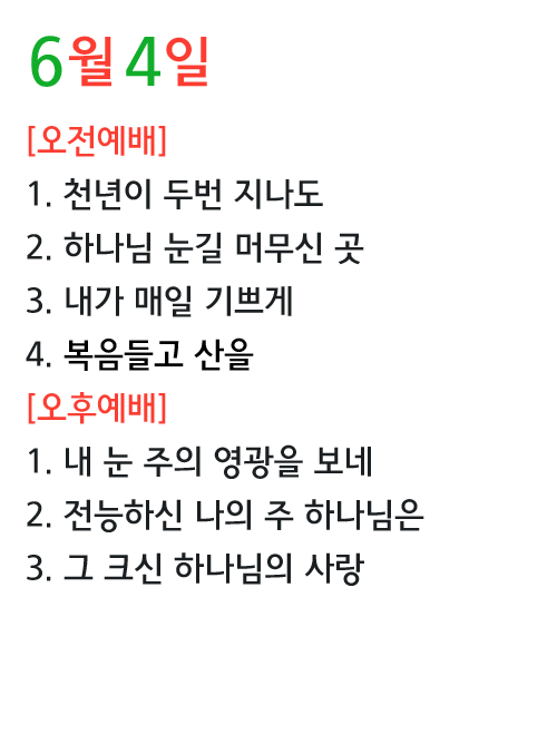 6월4일 찬양콘티